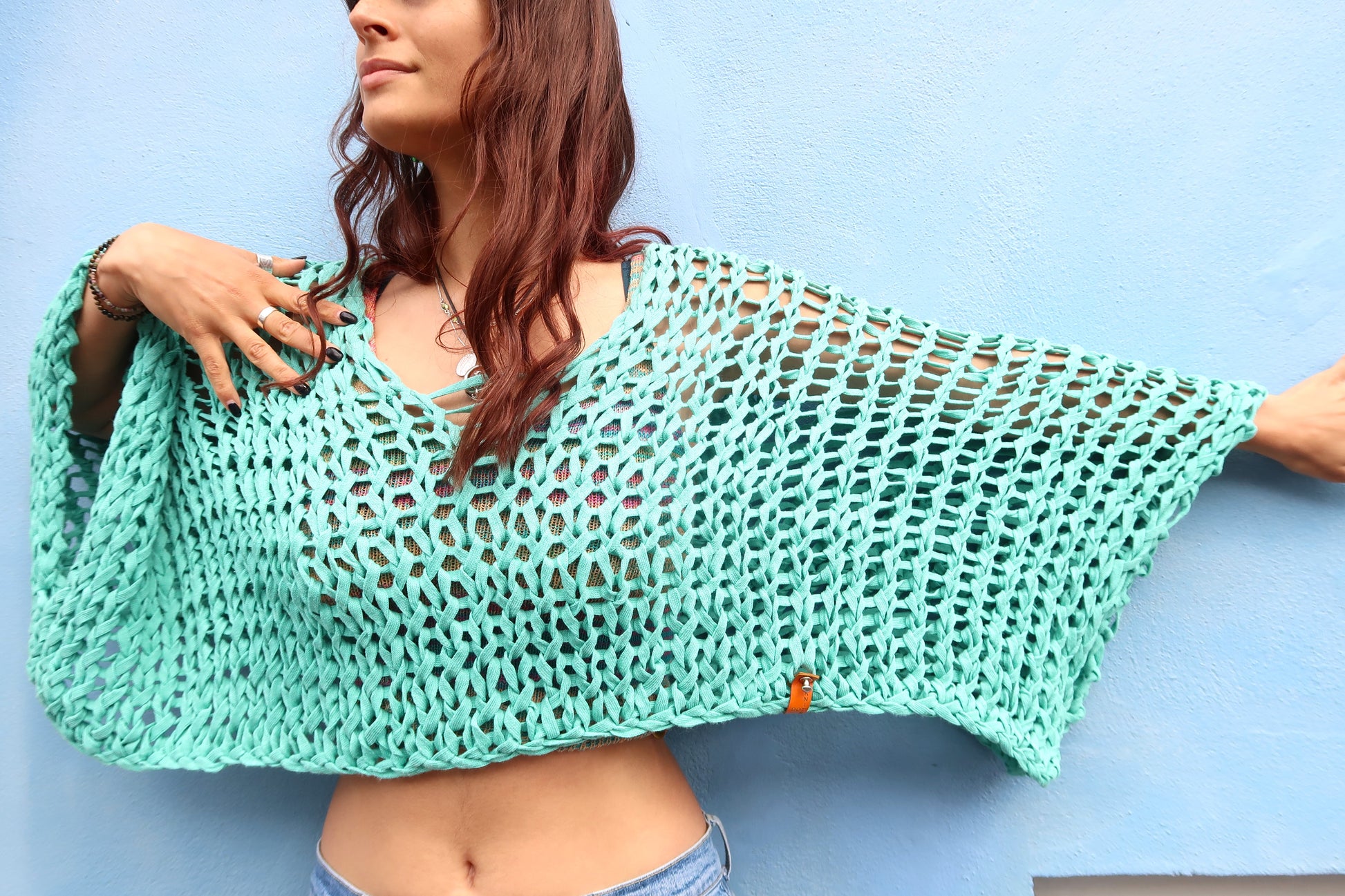 These tops have been carefully crafted to be the perfect summer pullover. Hand knitted using recycled cotton tape yarn, to keep you cool yet covered from the sun. A unique pattern designed by me, you won't find anything similar. Available in a range of vibrant colours.